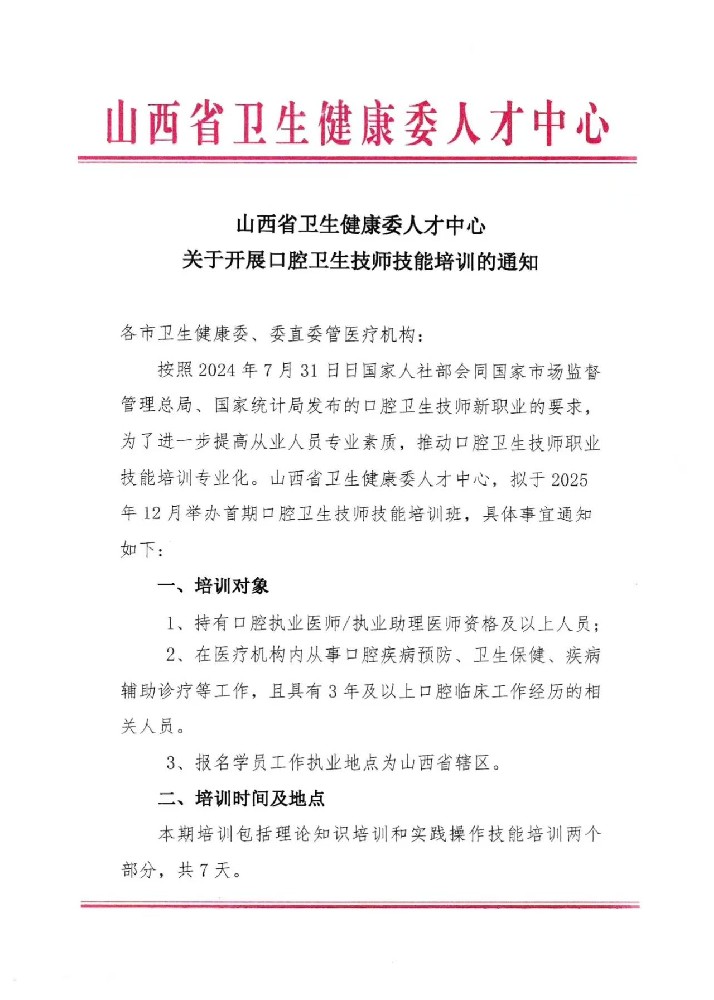 2025年口腔卫生技师技能培训通知
